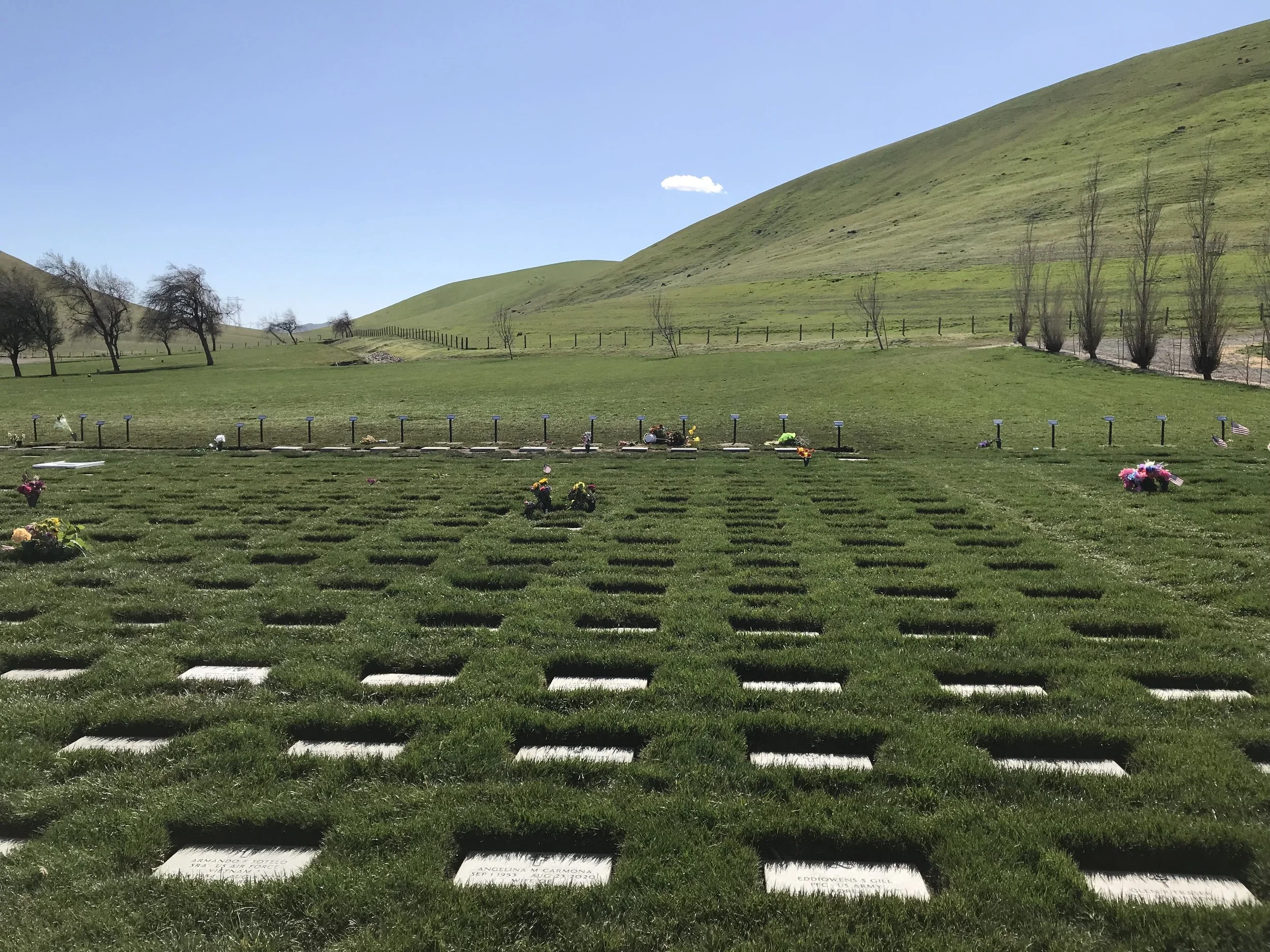 空軍に4年在籍していた義父は昨年亡くなり、軍用の国立墓地に眠っている。家からは車で1時間半ほどのセントラルカリフォルニアの緑のなだらかな丘に囲まれた、素晴らしく手入れの行き届いた墓地。心休まる。