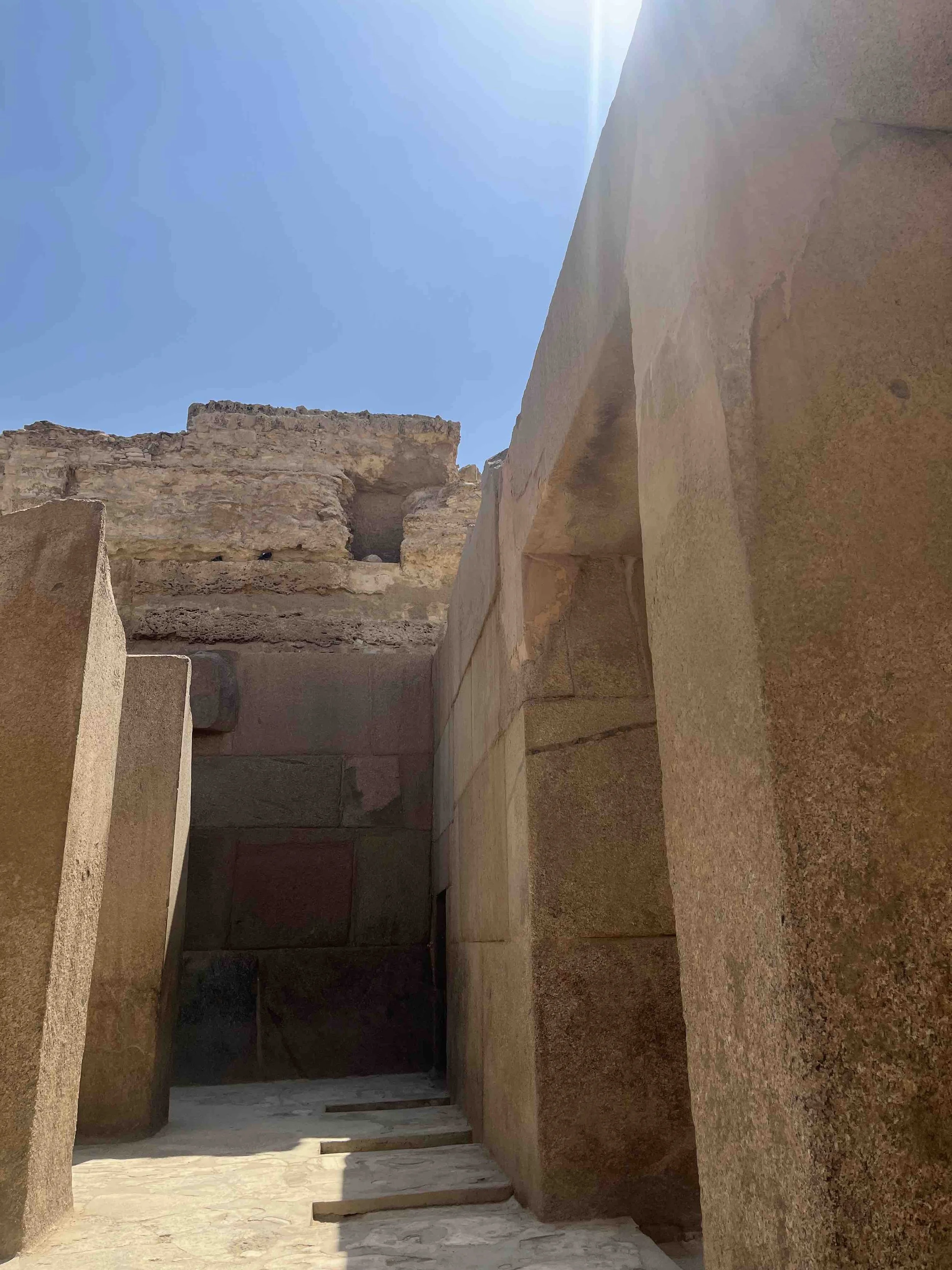 ギザの三大ピラミッドの真ん中にあるカフラー王のピラミッドに続く参道の前に河岸神殿という神殿の遺跡がある。そこを出るとすぐスフィンクスが目の前に現れる。神殿の見事な石の接合部分に目を見張る。その神殿の前まで川があったのだ。ここで王の遺体をミイラとする作業が行われた所だったそうだ。また、24時間の時を刻む凹みがあってその真ん中にカフラー王の像が当初はあったという。神聖なる場所だ。でも知らなかった場所。ピラミッドに気を取られていて、こんな神聖な場所があったなんて。