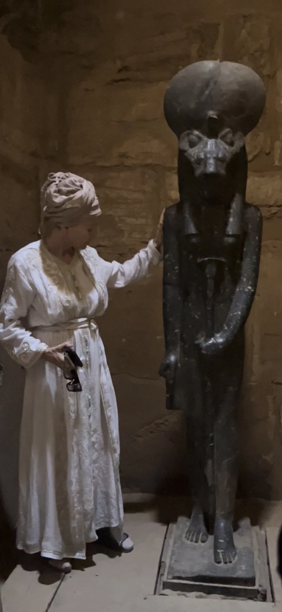 神殿は、ファラオの住まいでもあった。その一角にある等身大のセクメト像のある小部屋に特別に入らせてもらってトレイシーによるワークをしたのだ。ここで言うワークとは、トレイシーが高次元の何かと繋がってとうとうと語る言葉を聴きながら静かに自分と繋がる時間を持つこと。トレイシーの誘導で自分を高波動に保って、ソースコードに繋がる練習をする時間。それがピラミッドの中であったり、神殿地下の小部屋だったり、このようなセクメト像と一緒だったりと、いろいろなパワフルなロケーションでワークをするのだ。