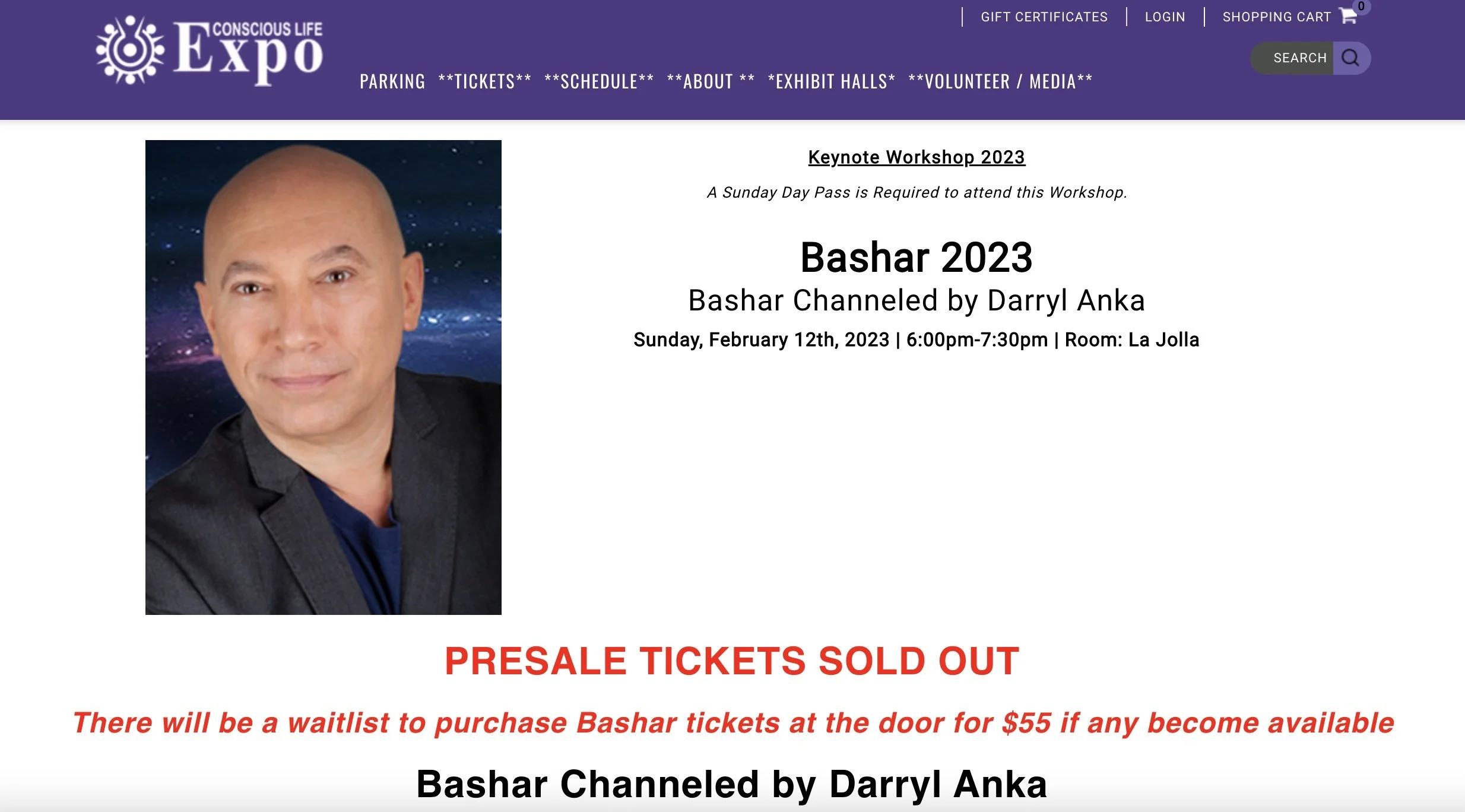 ロサンゼルスで毎年開催されているコンシャス・ライフ・エクスポというスピリチュアル系の大イベントがあって、コロナの間はお休みだったようだけど、今年はしっかり3日間開催され、またバシャールも登場する。今日から3日間のエクスポでバシャールが登場するのは最後の日の日曜。