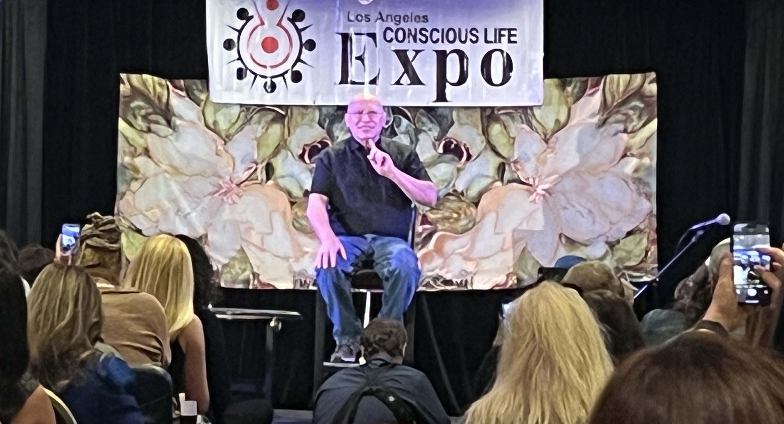 さて、ダリル・アンカ(バシャール)のワークショップには1000人ぐらい入ったらしく、3日間のエクスポ最終日の午後6時開始なのに、30分前に行くと既に100人ぐらい並んでいた。驚き。バシャールの人気めちゃめちゃ凄い。待つ人達楽しそう、パーティ気分で。